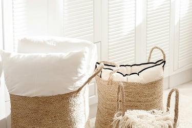 There's something about woven textures that instantly warms up a room. This Mkono basket is not only a chic piece of décor but also a spacious holder for your cozy blankets or those extra throw pillows. The fabric-lined interior ensures your items are protected, and the cute tassel adds a boho touch.